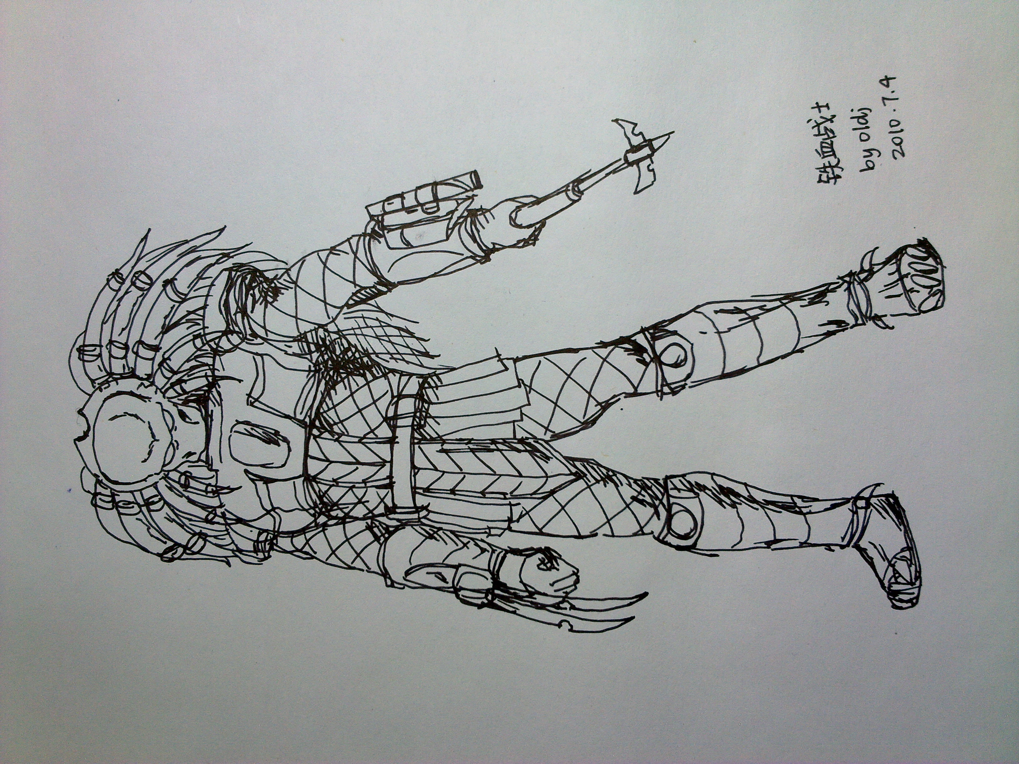 正要下楼吃晚饭,突然天降大雨,不得不在家再玩一会儿。想起《铁血战士III》就要上映了,于是涂鸦了一下: