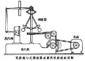 蒸汽机其实在瓦特之前就已经被发明并且小规模地应用了,但还存在很多问题。瓦特对蒸汽机做了两个重要的改进,一是将他将蒸汽机的加热室和冷却室分开,这样就将当时的蒸汽机的效率一下子提高为原来的三倍,另一改进与本文的主题有关,他为蒸汽机添加了离心调速器(也叫飞球调控器之类名字),使蒸汽机的转速能恒定在操作者指定的数值上。