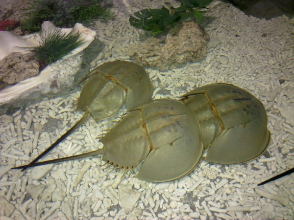 最近在杭州海底世界第一次见到了真正的鲎,如下图。