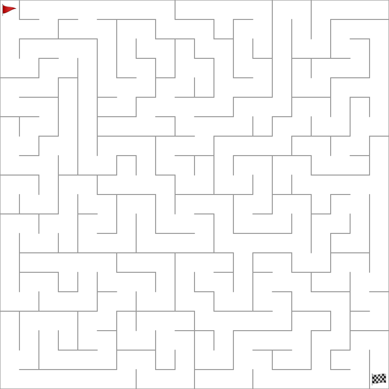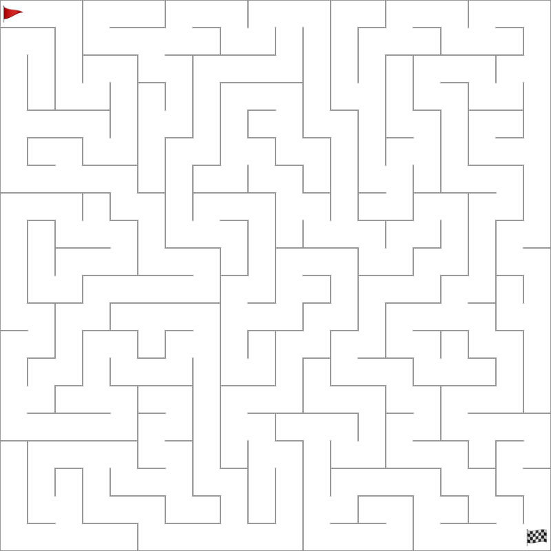 由这个算法生成的一个典型的迷宫如下: