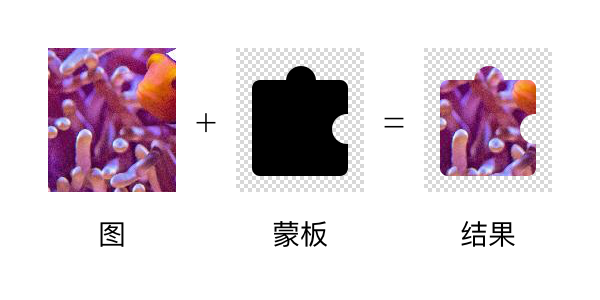 首先,我们要准备一张蒙板图,这个图可以在外部用专业的图像处理软件制作,如下所示(注意图中的灰白格子表示该处透明):