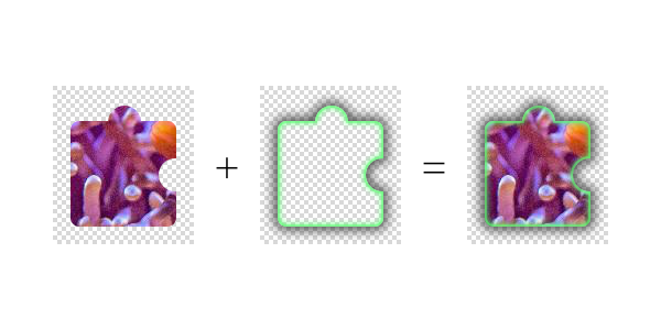 进一步,我们可以再给这个不规则图形添加特效,比如阴影、描边等。虽然 PIL 也可以做到,但最简单的方式似乎仍然是先准备一张带阴影、描边效果的图,再用代码使用蒙板对图片进行叠加。