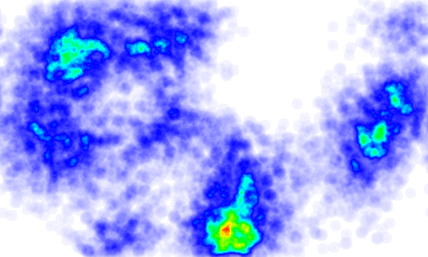 当然,不同风格的热区图可以使用不同的色盘,除了色彩外,还可以加入一些透明度的变化,比如很冷的地方除了色彩偏蓝外,还可以让它更透明。