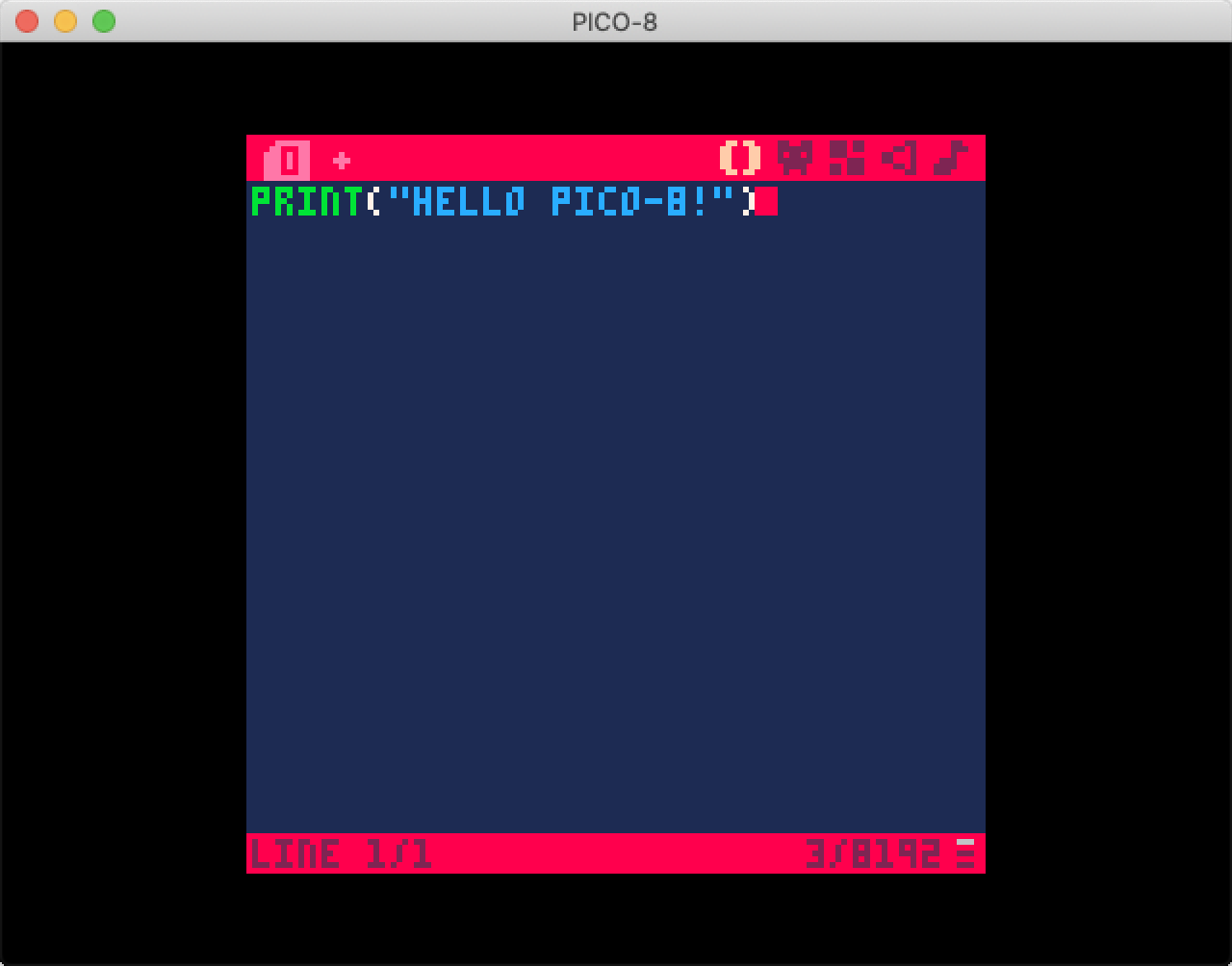 首先启动 PICO-8,可以看到类似下面的画面: