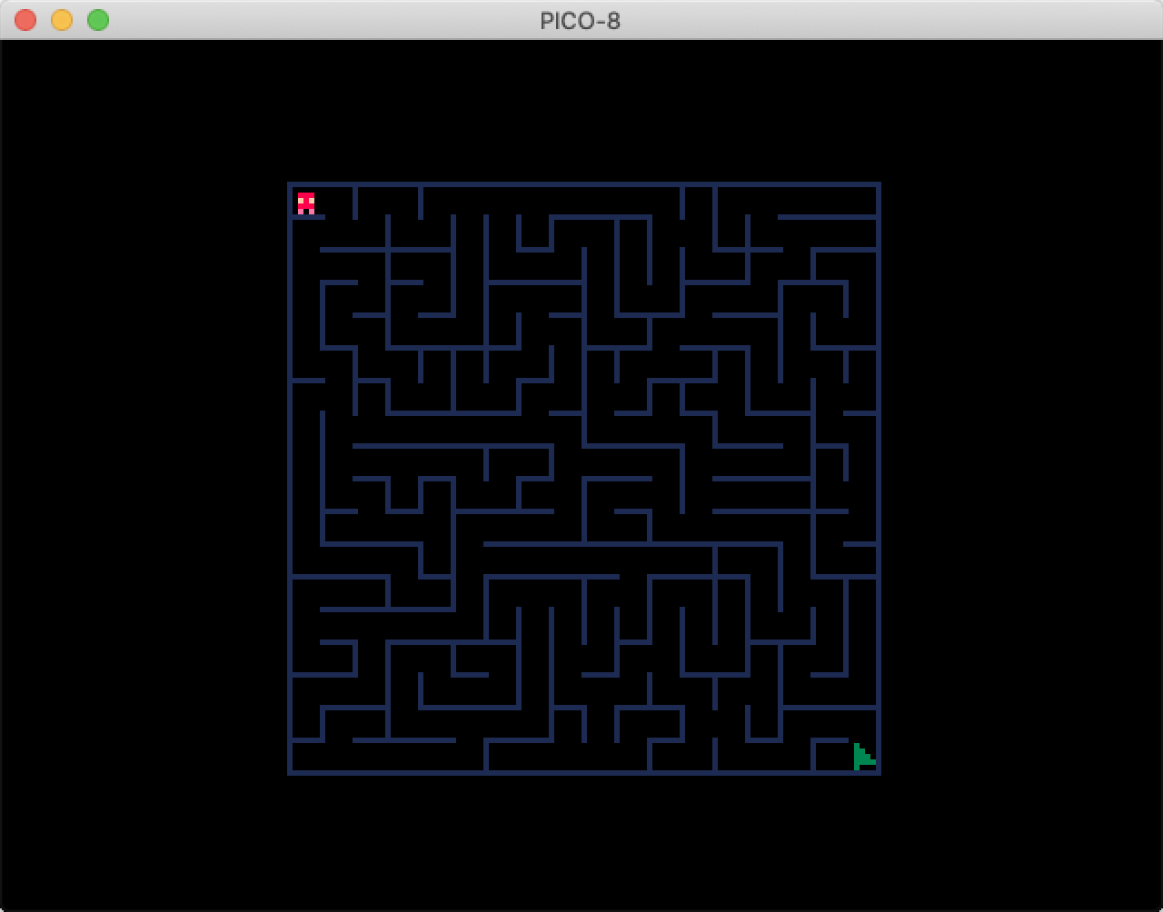 看过文档介绍之后,我决定试用一下,便尝试着将以前用 JavaScript 开发的迷宫游戏移植到 PICO-8 平台。